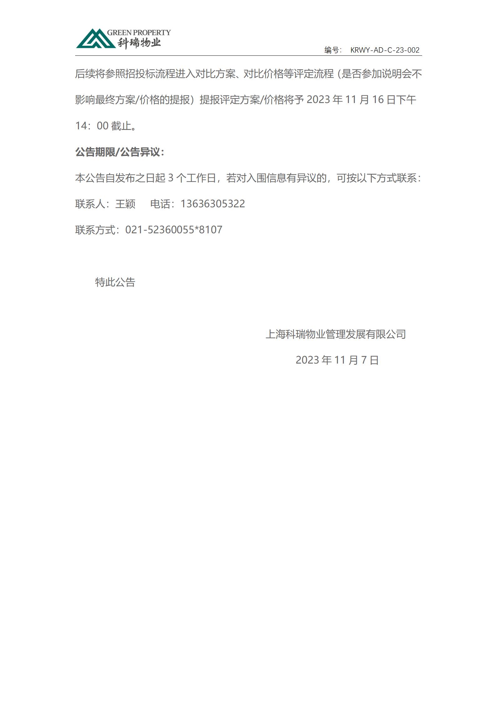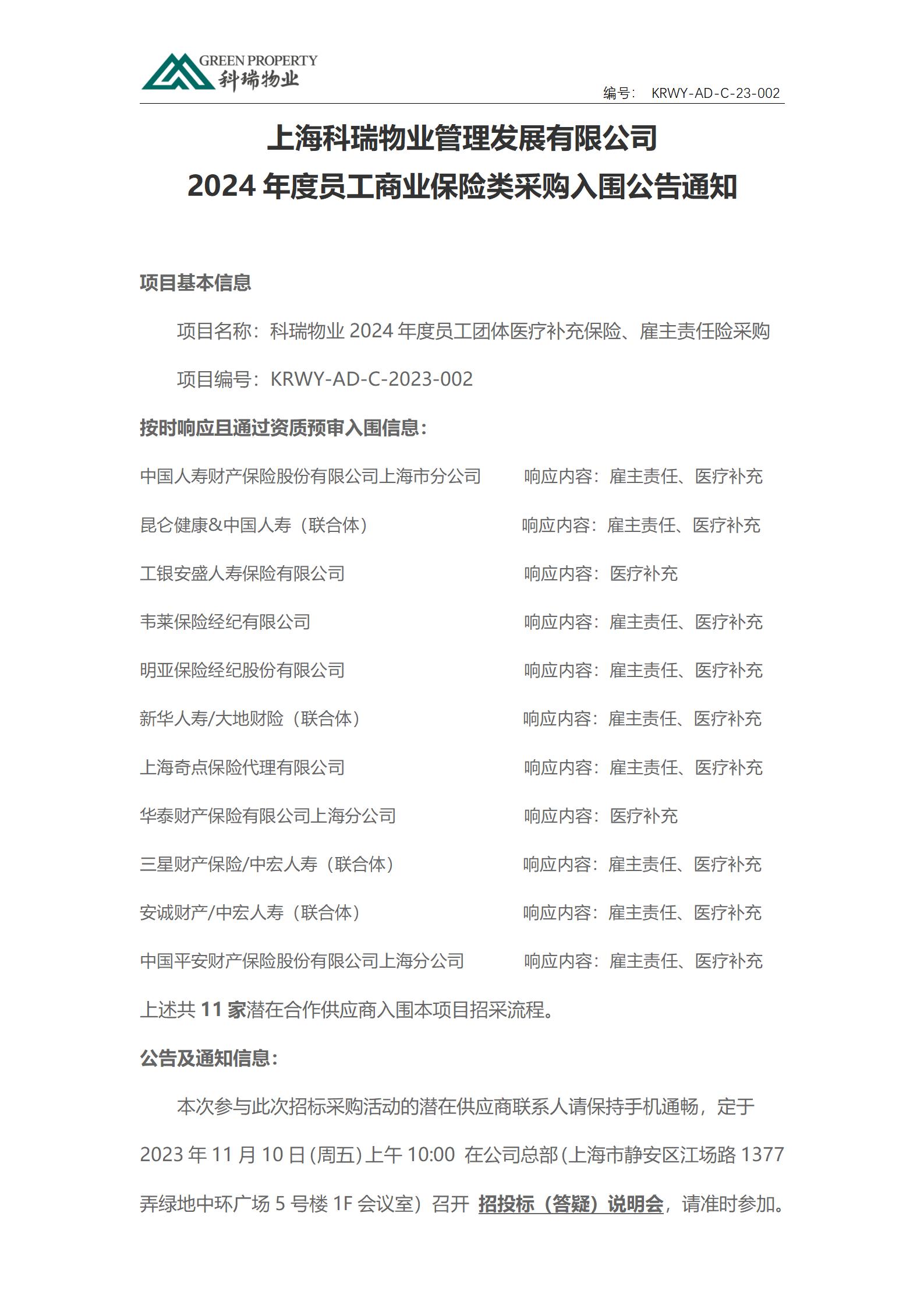 上??迫鹞飿I(yè)管理發(fā)展有限公司商業(yè)保險入圍公告通知