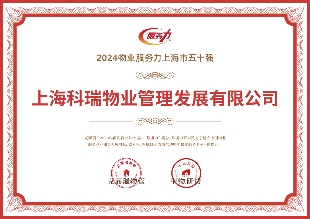 2024物業(yè)服務(wù)力上海市五十強 第8名