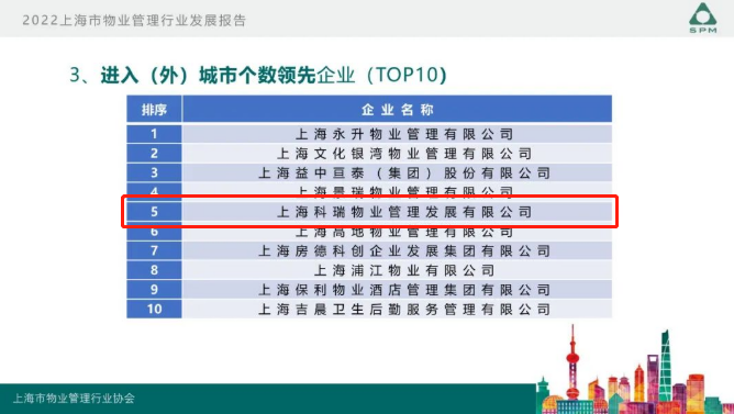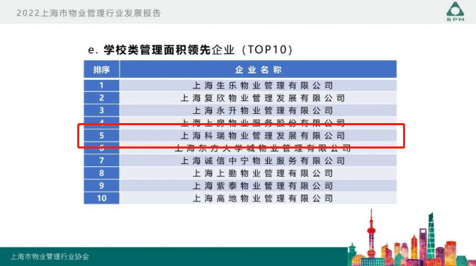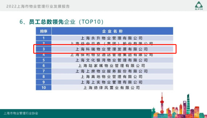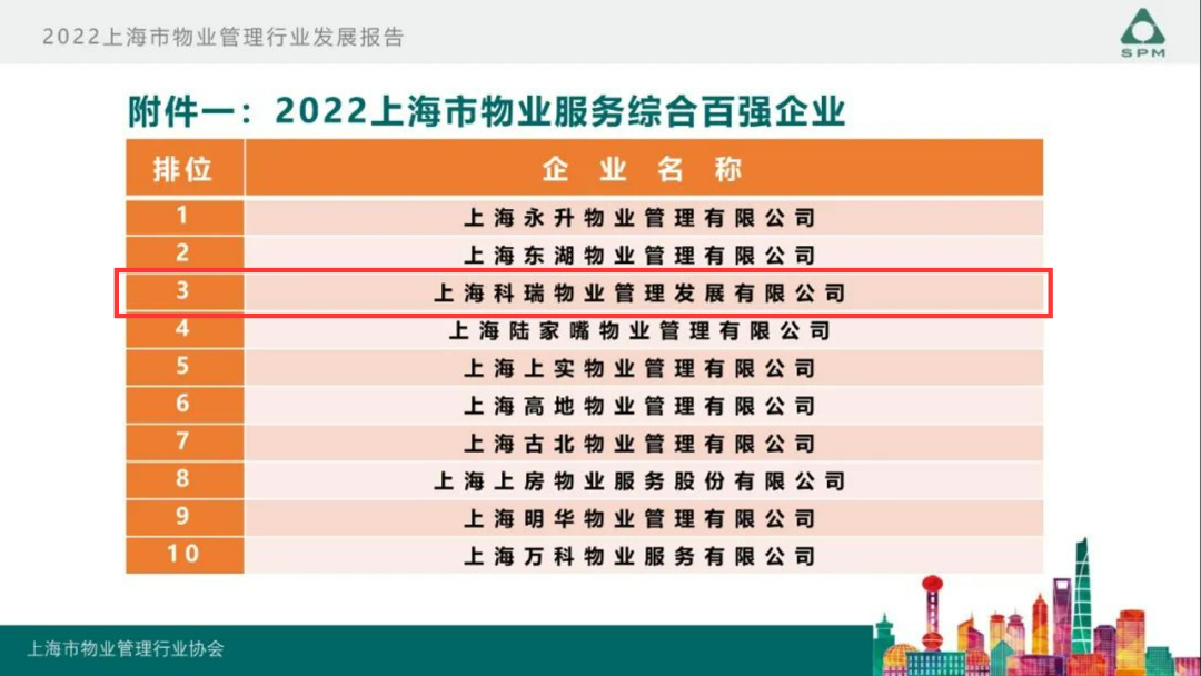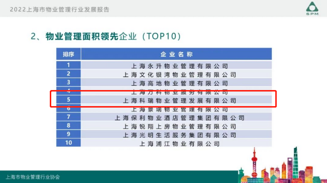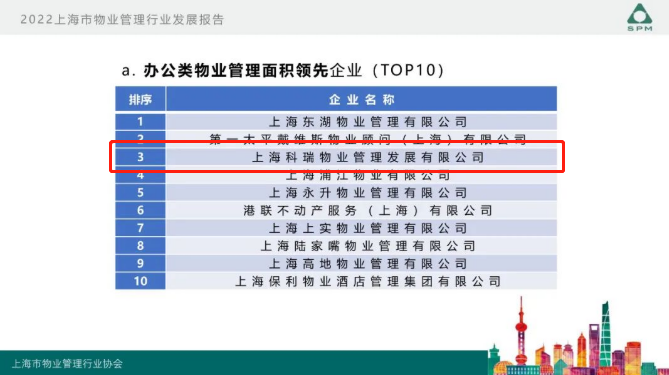 9月22日,上海市物業(yè)管理行業(yè)協(xié)會(huì)開展的“2022年度上海市物業(yè)管理行業(yè)發(fā)展報(bào)告發(fā)布會(huì)”在上海舉行。會(huì)上隆重發(fā)布了《2022年上海市物業(yè)管理行業(yè)發(fā)展報(bào)告》、《2022年上海市物業(yè)管理行業(yè)百企千居指數(shù)》,科瑞物業(yè)再次榮獲2022上海市物業(yè)服務(wù)綜合實(shí)力百?gòu)?qiáng)企業(yè)。